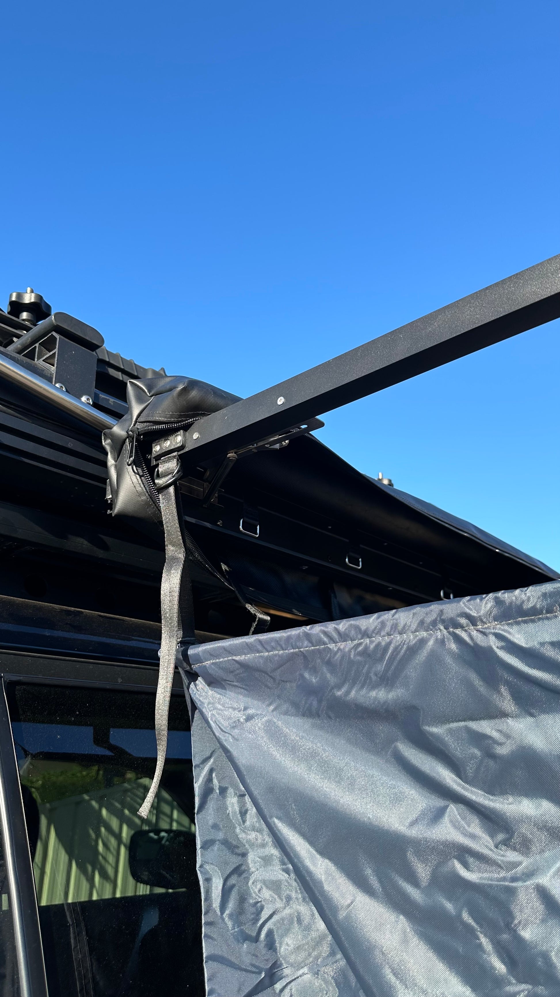 The Safari Seekers Shower Tent features a sleek gray color scheme and is crafted from 420D Oxford breakwater fabric, providing both waterproof and UV protection. Its silver lining enhances durability and insulation. With an aluminum rod frame, it offers sturdy support, while SBS zippers ensure smooth operation and longevity.